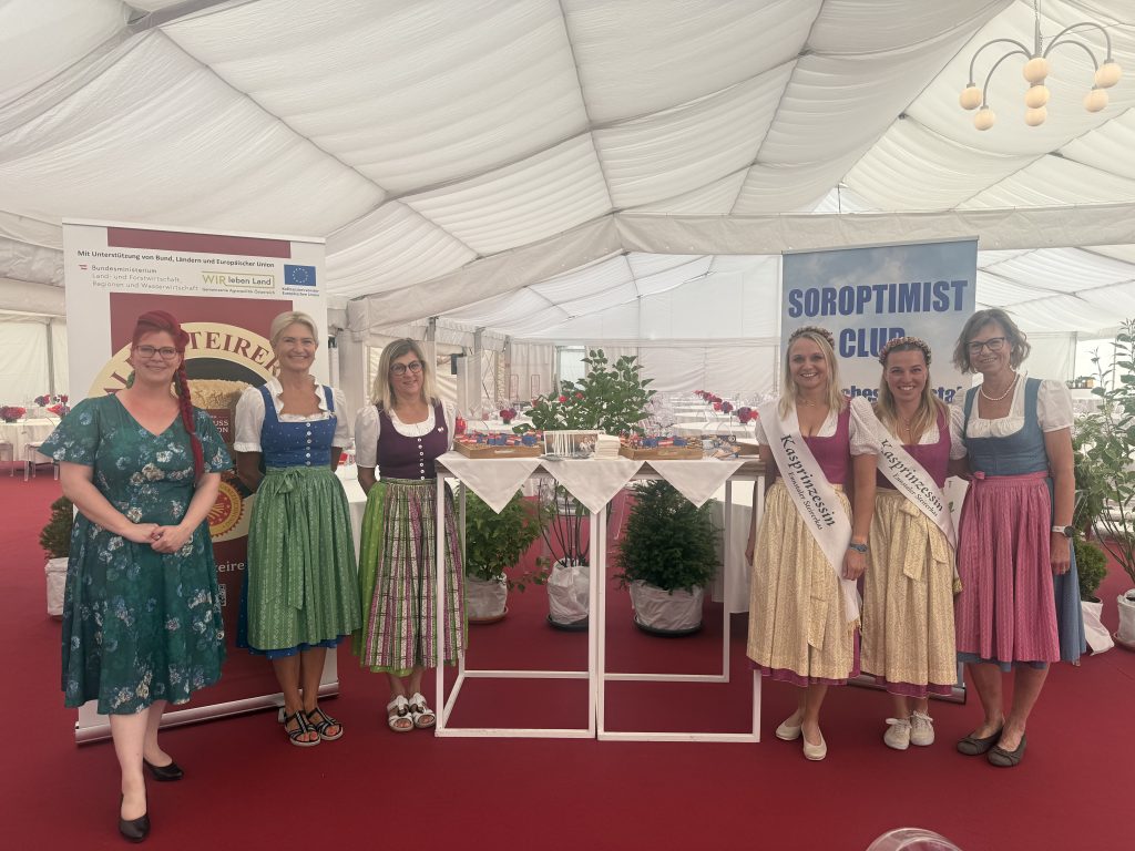 Mitten im Trubel: Wir die Soroptimistinnen des steirischen Ennstals, die gemeinsam mit den Kasprinzessinnen für ein besonderes Highlight sorgten. Viele Gäste nutzten die Gelegenheit, den echten Ennstaler Steirerkas zu verkosten – fachkundig präsentiert, charmant erklärt und mit Begeisterung serviert.